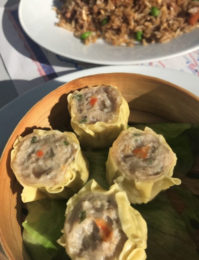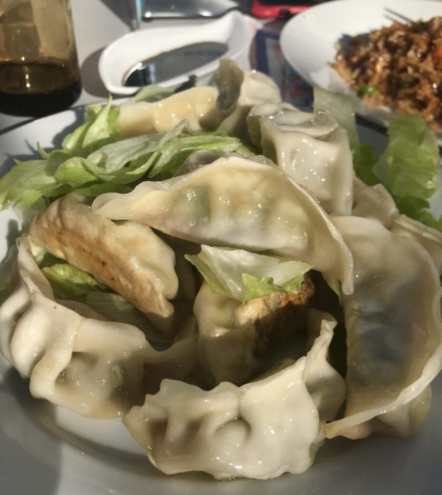 「めちゃ安い中華がある!」と友人に誘われ、新年会は中華ランチ。太陽の下、テラス席で。またしても「常温の水」で乾杯。
