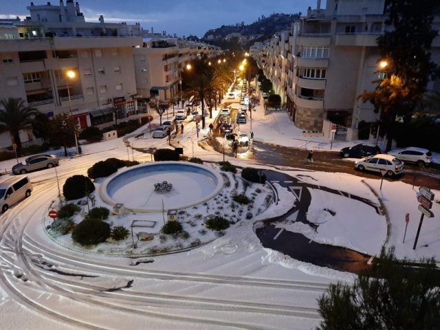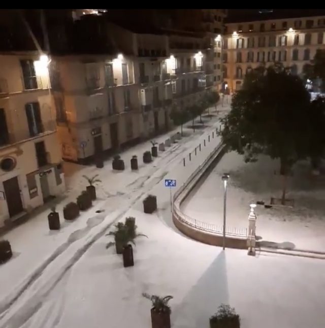 事態に。なにしろセントロの「メルセー広場」が、あられで真っ白に!ええーーーっ。信じられない光景(2枚目)マラガに最後に雪が降ったのは、1954年のこと。