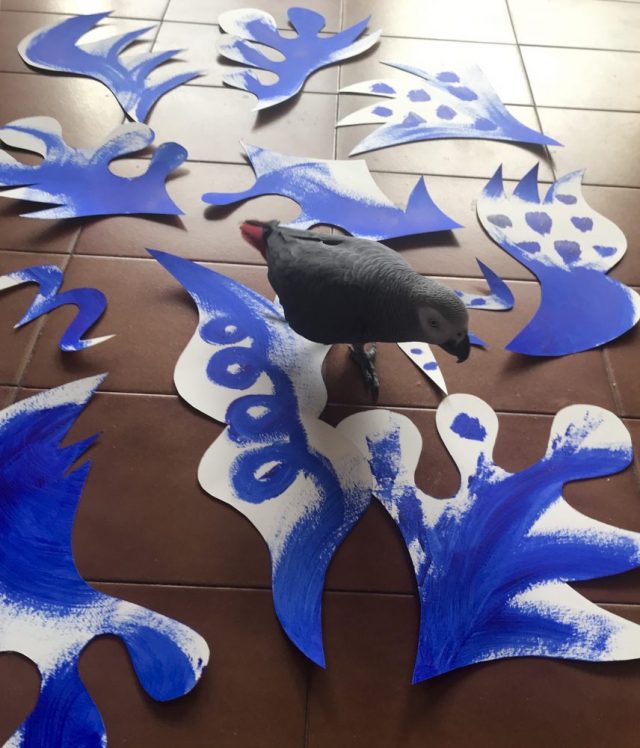 雷の苦手なオウムは、腰が抜けたような声で泣いている。元気づけるため、頭を撫でたり話しかけたり、歌をうたったり。