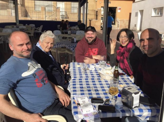 ように(笑)ハビー、ダビー、カルロス、アウローラ。楽しいひと時をありがとう。これだけ飲んで食べて一人15ユーロ。もう大満足。