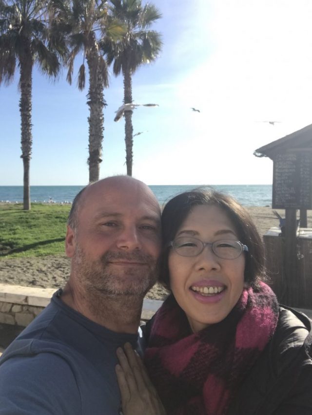 今日はハビ吉の誕生日。海岸通りのテラス席で、お日さまをいっぱいに浴びてのぽかぽかランチ。この時点で20度。これぞマラガ。