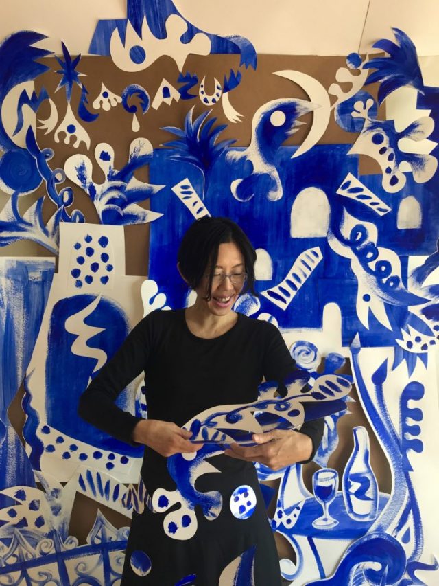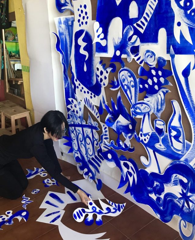 「床に向かって、作品が広がって行ったらどうだろう!」