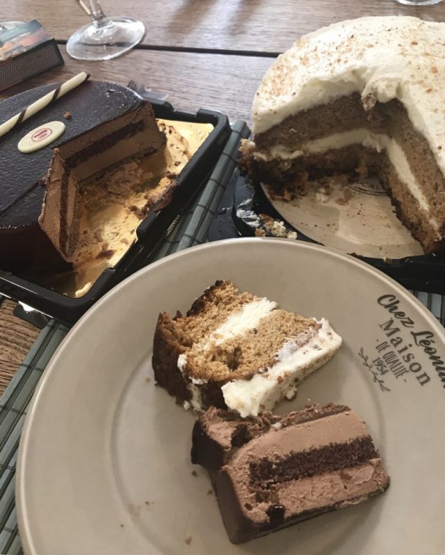 焦る私に、ダビーが袋からケーキを取り出す。なんとチョコレートケーキとニンジンケーキの2種類。贅沢じゃ〜。