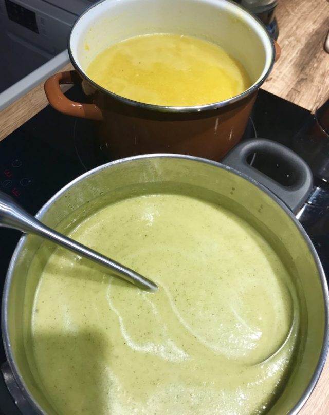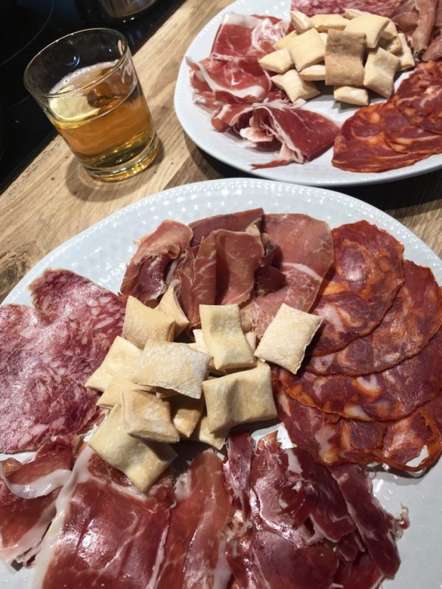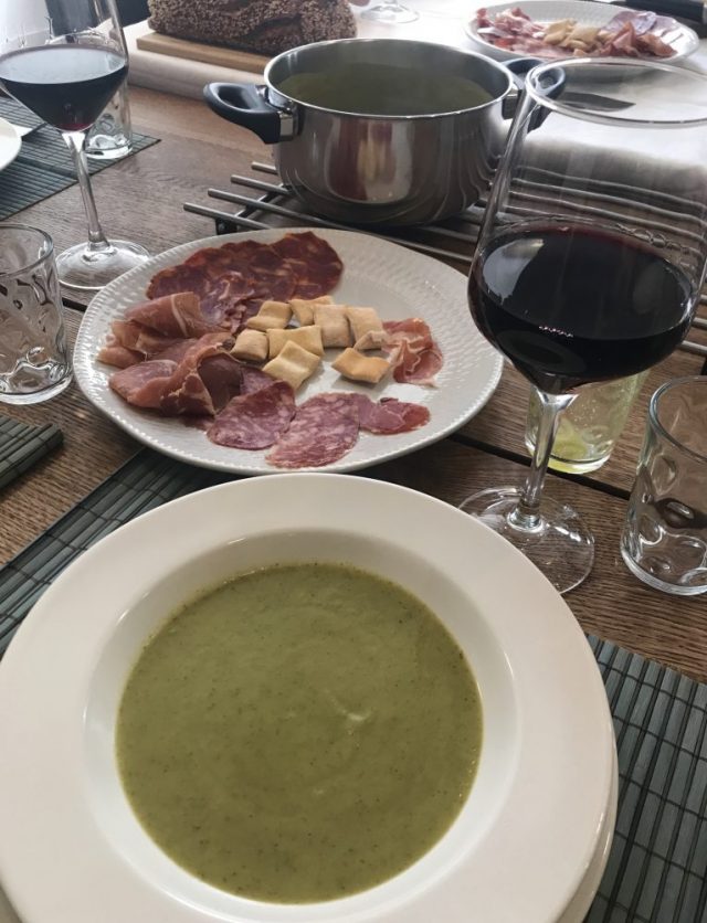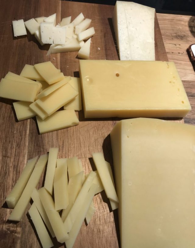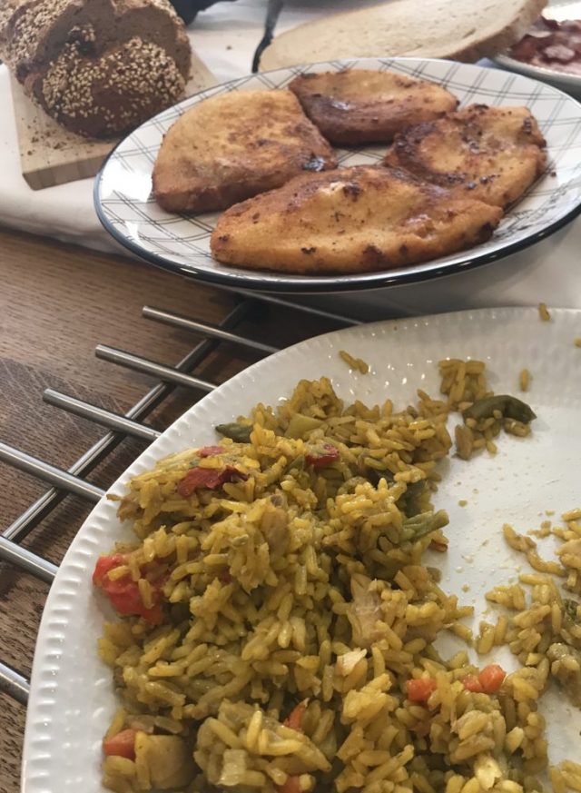 手作りのスープ2種類、ハムの盛り合わせ、魚のフライ、チーズの盛り合わせ、パエジャ、魚のフライ、チキンの煮込み・・・これ全て手作り。