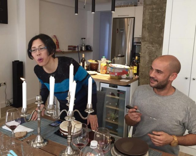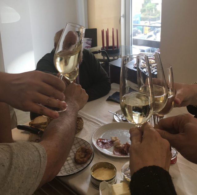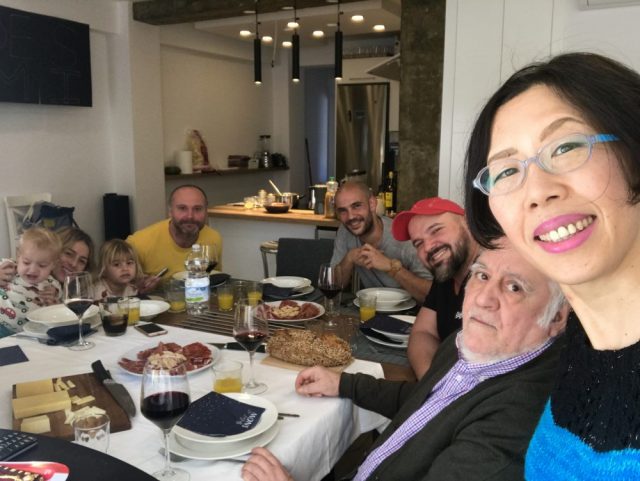 ドタバタしながら、ロウソクの灯を吹き消す。シャンパンで乾杯!2時半開始のお祝いランチ。お開きはなんと夜の8時半。6時間耐久。