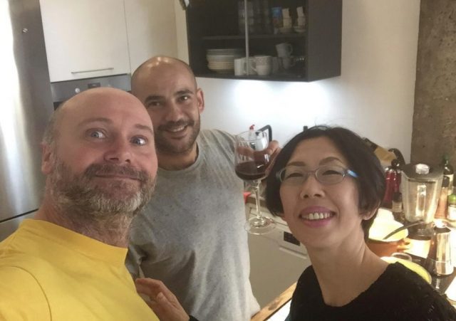 「20年以上前。スペインへ渡って初めての誕生日を祝ってくれたのは、ハビ吉とダビー、お母さんのアウローラでした。生クリームとイチゴのケーキで」