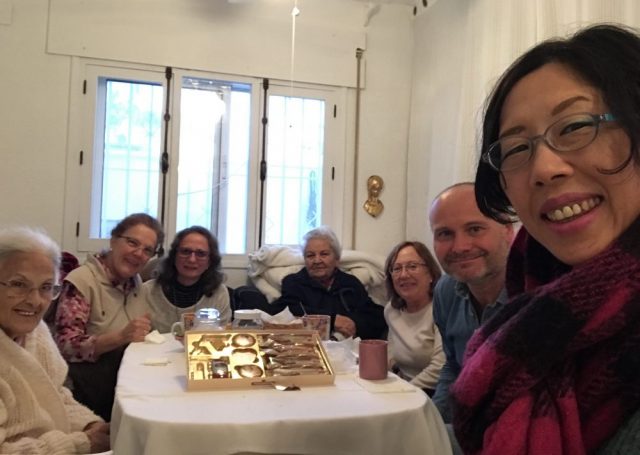 さて。その後に招かれた午後のお茶。ハビ吉ファミリーと、86歳になるおばあちゃんのお誕生日祝い。手作りリンゴケーキがおいしくて、3回も喜んでおかわりしていたら