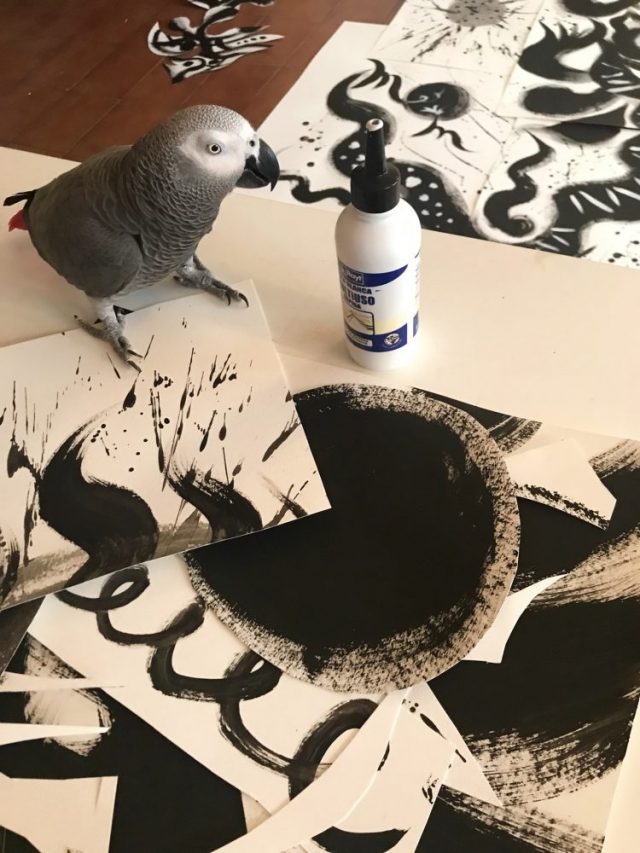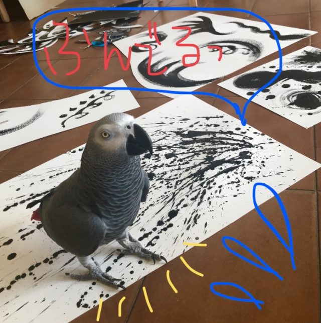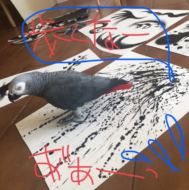 床絵から壁画に。その瞬間の、めくるめくような興奮と感動。を、オウムと分かち合っています。