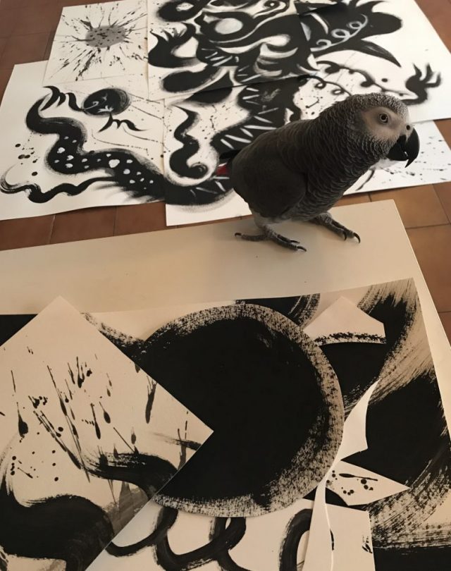 で、作りあげていく。躍動感と生命力を、これから吹き込んでいくのだ。その土台がこれ。まるで絨毯。アトリエの床を占領。