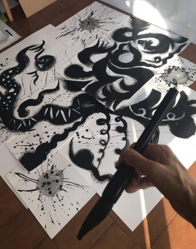 2メートルの「夢」文字が形になってきた。夢に向かって命が燃え上がり「龍」となって天を舞う。その姿をこれから