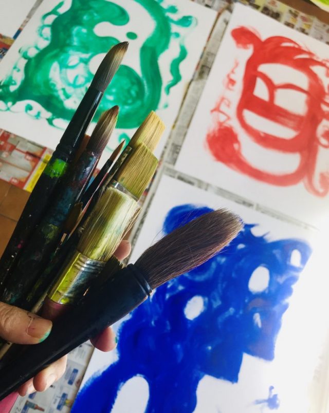 その2つがほぼ無限にある。壁という壁、床という床に、キャンバス地や紙をだだーーーっと広げ、思いつくままにペイントしてみたい。