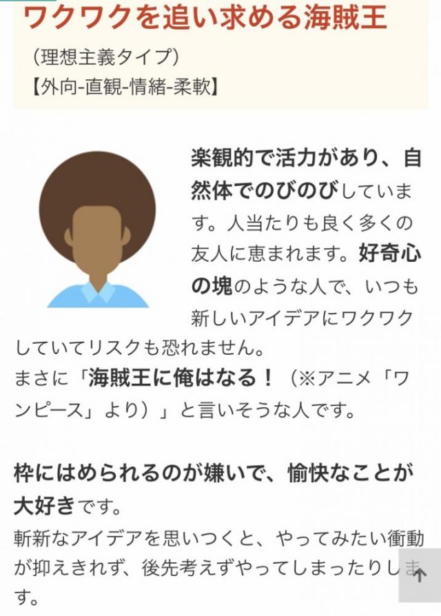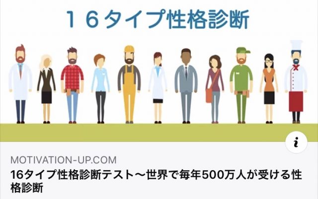みなさんもぜひやってみてください。「16タイプ性格診断テスト」かなりおもしろい結果が出ますよ。