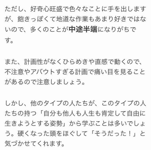 「計画性がなくひらめきや直感で動くので、計画がアバウトすぎて痛い目にあう」