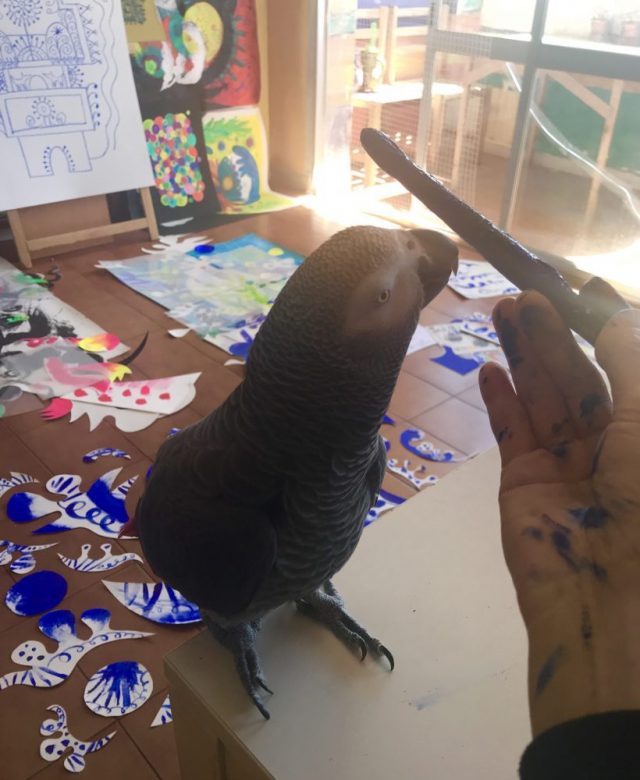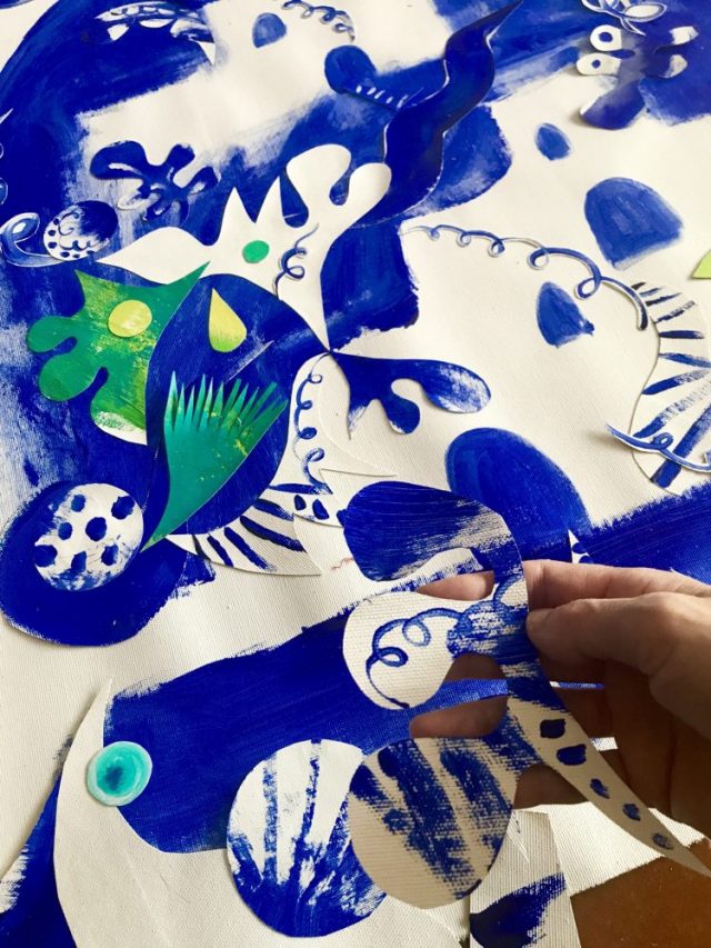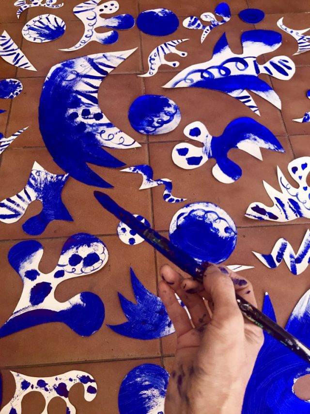 今日は「青」でペイント&コラージュ。マラガの青い空と地中海。私の愛するマラガに、一日も早く平和が戻りますように!