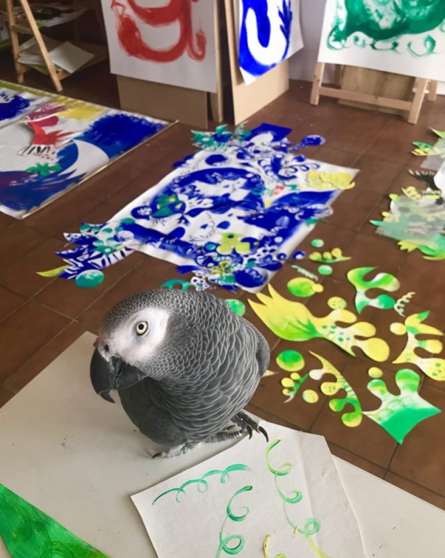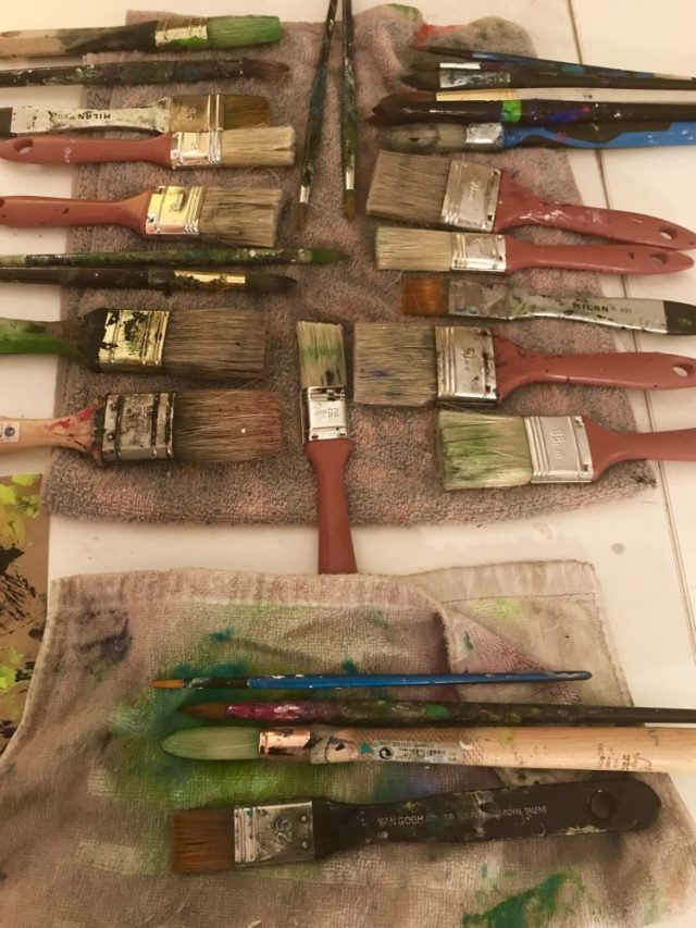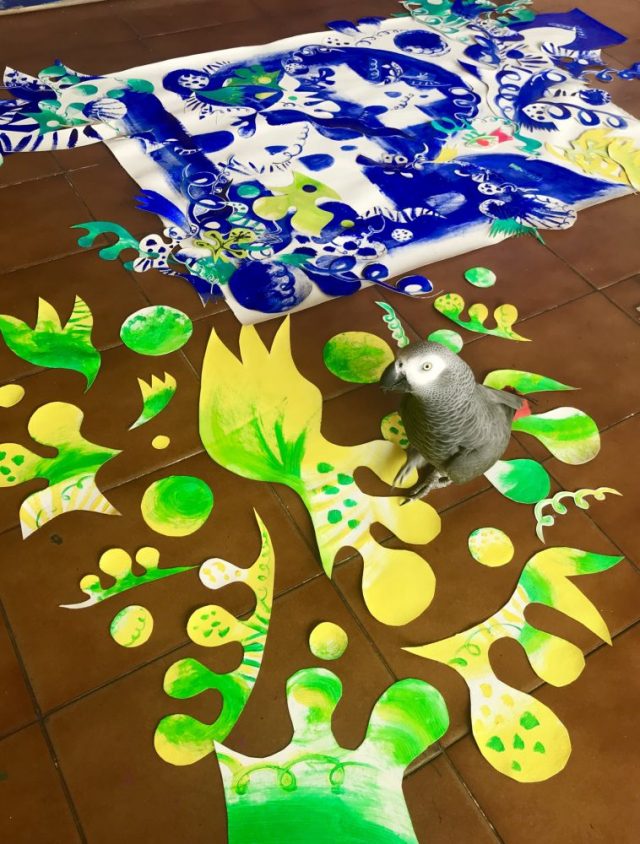 今日は「黄色&緑」でコラージュパーツをペイント。春への思いを込めて。今年のスペインは、春が遠そうだ。