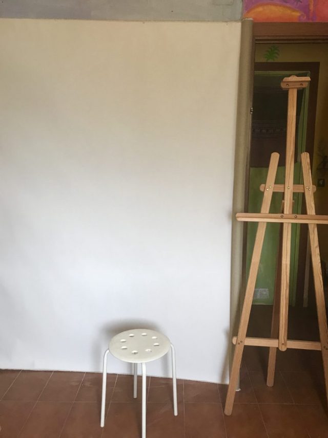 大工仕事に挑戦!すっきりと壁を空けたら、2×2mのキャンバス地を貼り付け