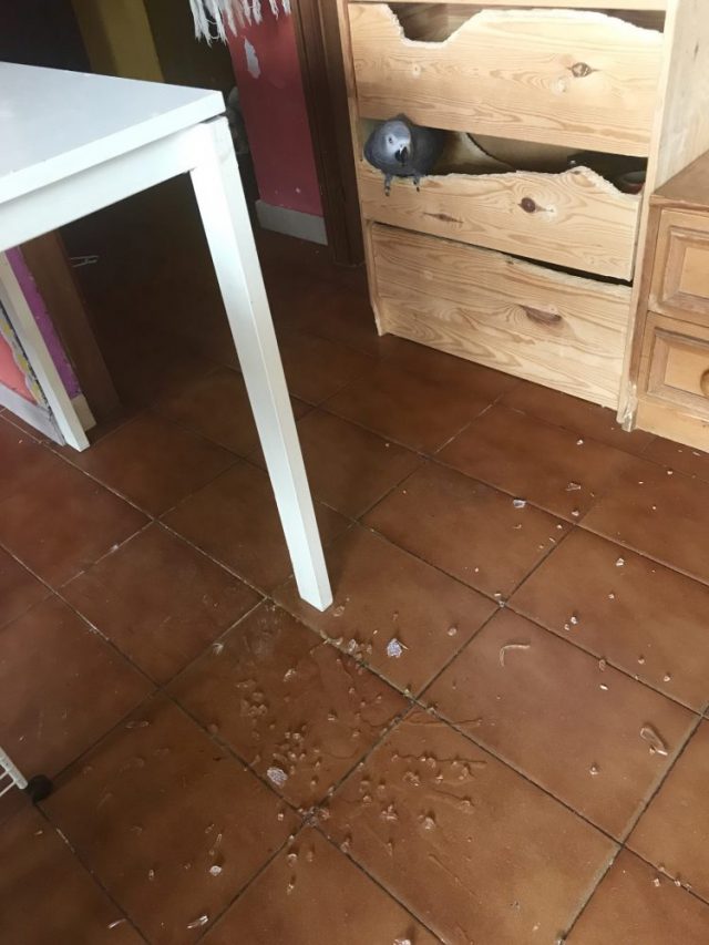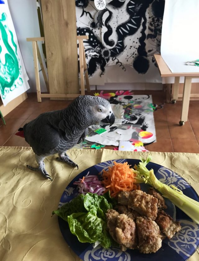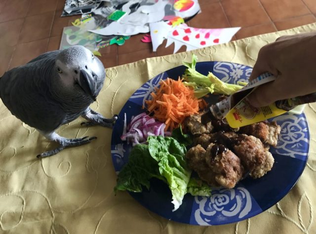 一人喜んでいたら、オウムにグラスを割られた。割った本人は、三段引き出しへ逃亡。涼しい顔で犯行現場を眺めていた(写真)。