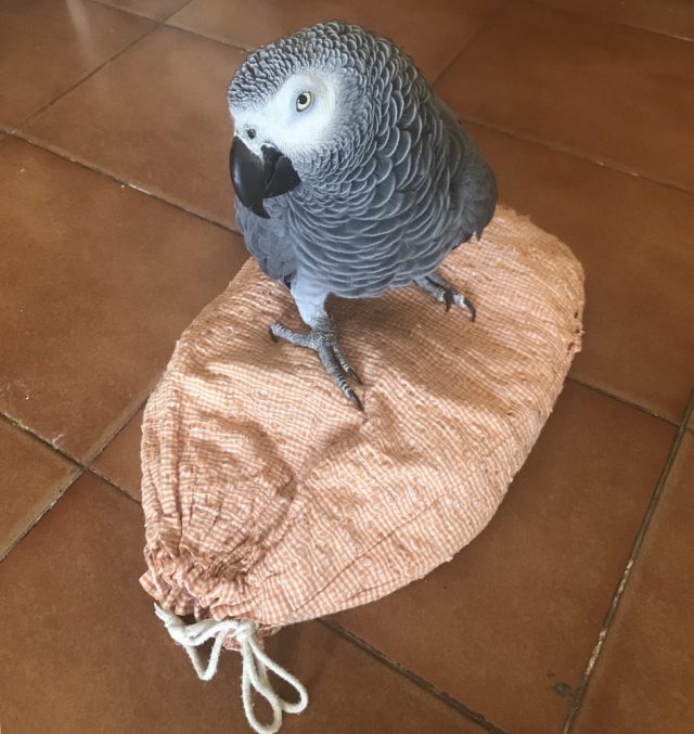 今日は30度まで気温が上がり、完全に夏日。オウムから「湯たんぽ」を取り上げようとするが、もうすごい勢いで怒る。上に乗って降りない。使って噛んでもうボロボロなのに。