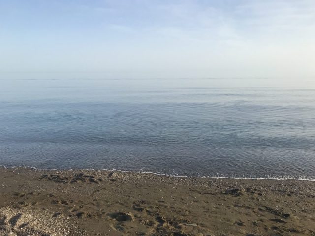 裸足になって、波打ち際を歩く。波のない穏やかな、そして温かな地中海は「ゆりかご」を思わせる。