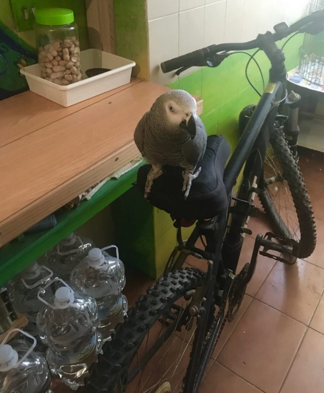 で、スーパーの店内にいたくない。それも注意力マックスで。最近、オウムが自転車によく乗っている。とまり木?