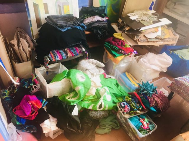 ランチョンマット、テーブルクロス、ベットカバーなど見事なパッチワーク作品を、先日見せてもらったばかり。まずはうちにある全ての服や布きれを