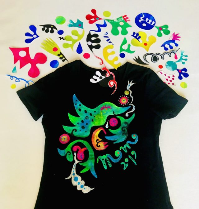 【一日一作プロジェクト】ペイントTシャツで「ソルプレサの夜(サプライズの夜)」を作った。3ヶ月ぶりに再会したハビ吉とカルロス。まずはうちの前の海岸通りのカフェテリアへ。