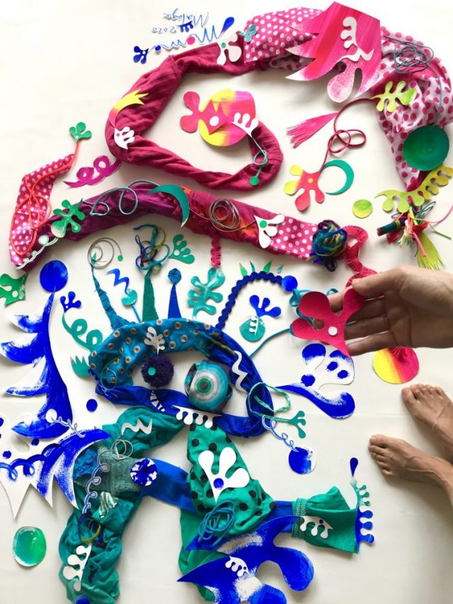 【一日一作プロジェクト】今日は「遊芽夢(ゆめゆめ)」を作った。先日、青系布で作った「百遊芽(ももゆめ)」にピンク系布を加え「夢文字」アート第二弾。