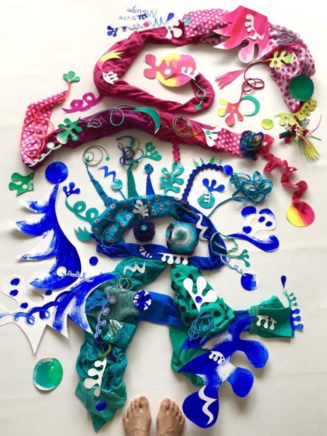 「庭」をイメージして作った。空と海、太陽と月、花と植物、生き物たちが集う。安らぎの空間。外に出られない生活が、心の内に「庭」を作った。思いを、祈りを形に。