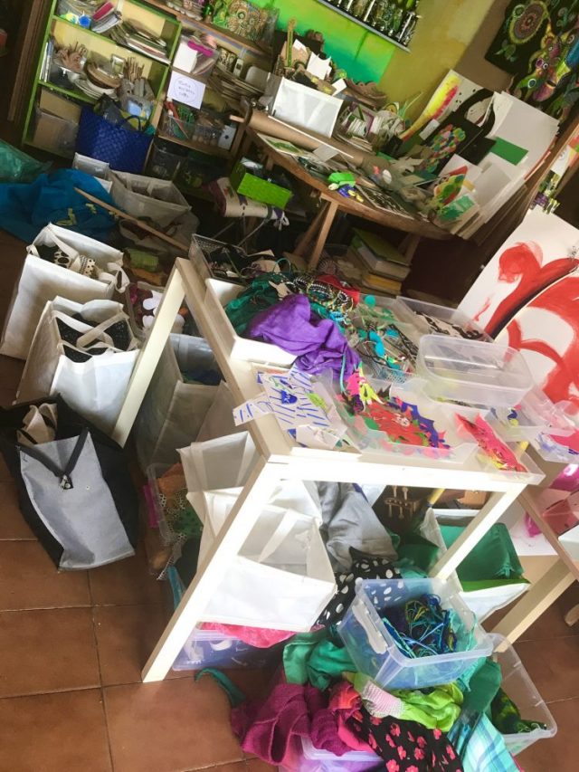 アート素材、本、資料、書類、楽譜、CD、服、器具、板、スーツケース・・・とにかくここには「物」が詰め込まれている。一番の問題は