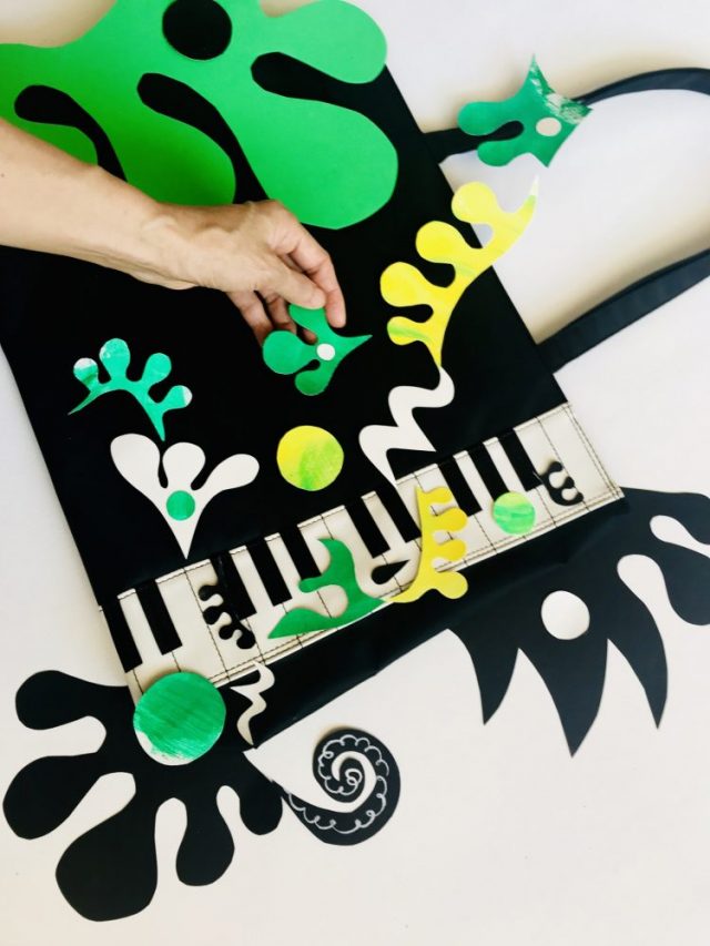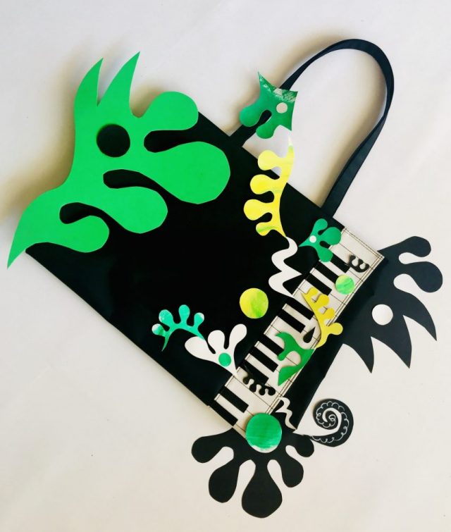 【一日一作プロジェクト】今日はピアノバッグを使って「夏庭音夜(なつにわおとや)」を作った。アトリエからトイレへ行く途中に「ピアノ室」があり