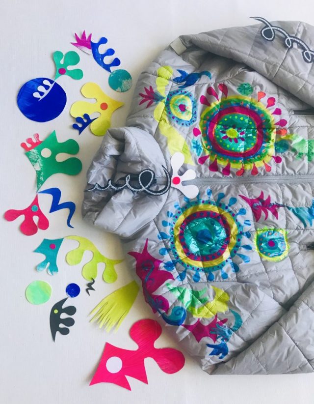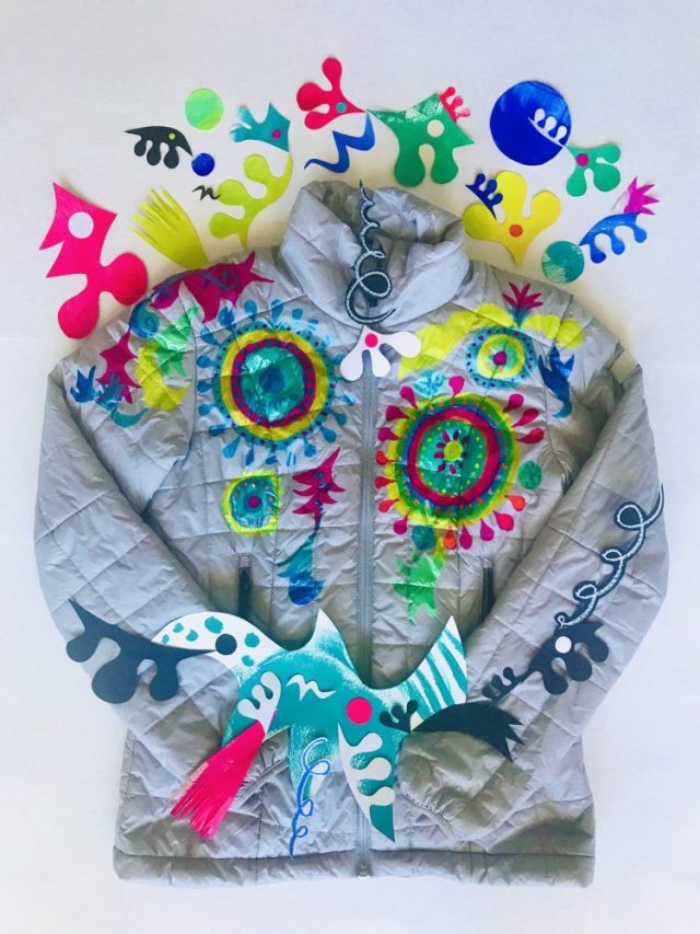 【一日一作プロジェクト】衣がえ完了記念に、ペイントしたダウンコートで「雪宴(ゆきうたげ)」を作った。タンスが夏物でいっぱいになると鮮やか〜。軽やか〜。