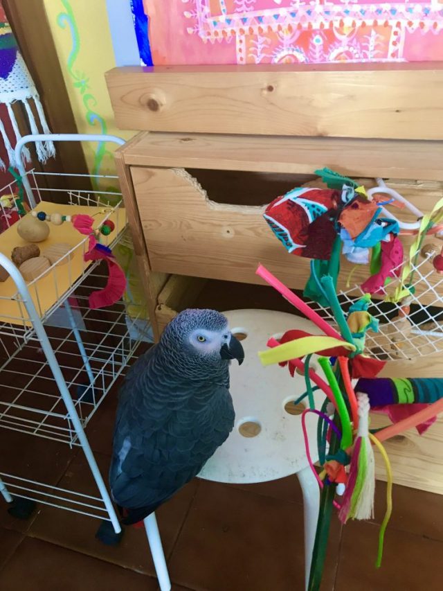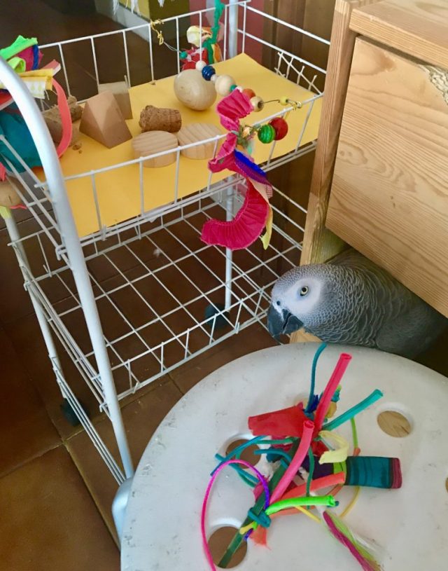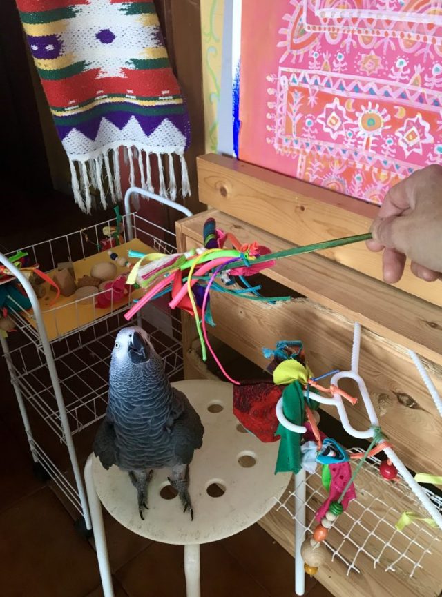 【一日一作プロジェクト】オウム用おもちゃの「ぽんぽん花」を作った。いよいよ「新たな日常」がスタートし、週に3、4度は出かける生活が再開。私的ビッグニュースは