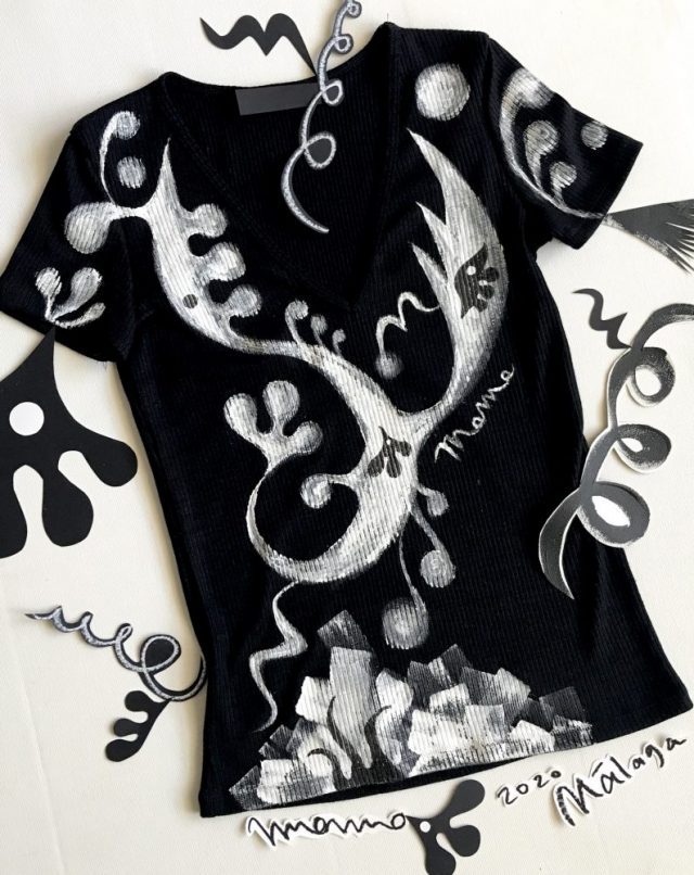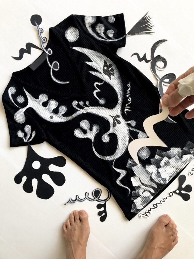 【一日一作プロジェクト】黒シャツに白一色でペイントした「音霊の夜(おとだまのよる)」。今日の私的ビッグニュースは