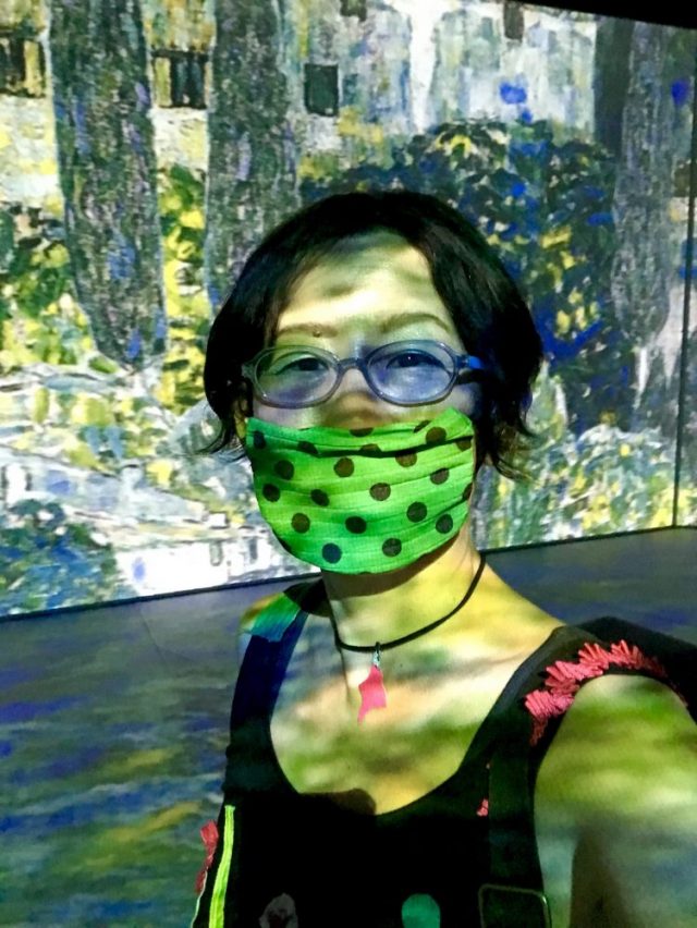 【一日一作プロジェクト】手作り水玉マスクと、もも衣「くるりんぽん」でマラガ港へ。特設会場の「El Oro de Klimt(黄金のクリムト)」へと走る!