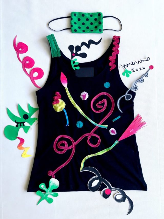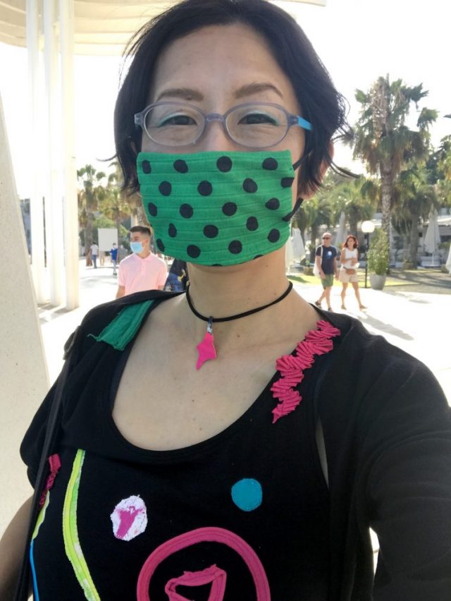 【一日一作プロジェクト】もも衣。手作り水玉マスクと、黒ランニング「くるりんぽん」をセットで。外出するのが楽しみ〜。