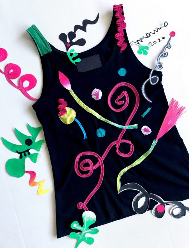 黒ランニングの上で、夢や好奇心、わくわくや希望が飛んだり跳ねたり。ももジーンズに合わせたらぴったり!で驚く(笑)。