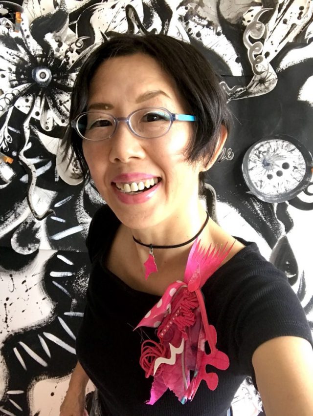ピンクのパシオン(情熱)玉を身につけて。ブローチアートでパワーアップ!いろんな色でどんどん作るぞー。もも衣は全てがパワースポット。祈りを形に。