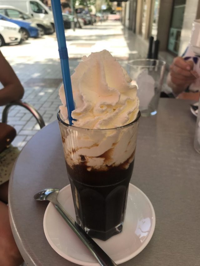 たっぷり2時間半に渡る魚介類ランチの後は、アイスクリーム屋さんへ。アイスコーヒーに生クリームやアイスをたっぷり乗せて。
