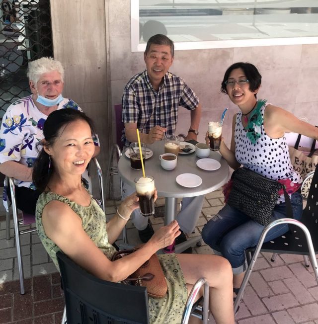 でスタート。今日のメンバーは黒川さん&ムーサさんご夫妻(なんとご結婚52年!今も仲がよくてうらやましい限り)と、語学学校に勤めるさとみちゃん。