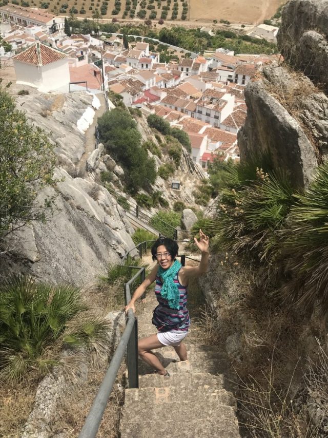 と、メッセージをしめていた(笑)心配かけます。さて帰り道。登りより、下りの方がはるかに怖い。階段のずっと後方に、村が広がって見える。