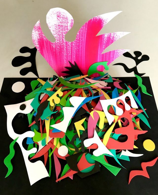 色とりどりの夢のかけらが、一輪の花となる。「廃材」で作ったアート。そしてすぐに、その言い方が間違いだと気づいた。切り抜いたパーツも、切り抜かれて残ったパーツも「素材」に変わりはない。