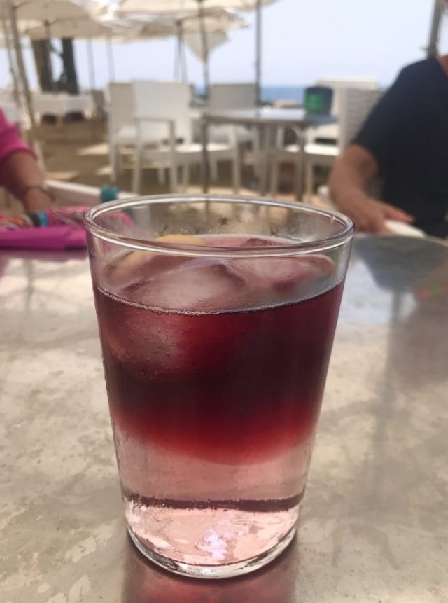 せっかくなので、私の大好きなビーチ&レストラン「Baños del Carmen」を紹介します。夏はやっぱり「ティント・デ・ベラノ(赤ワインのソーダ割)」。ぜひお試しを。