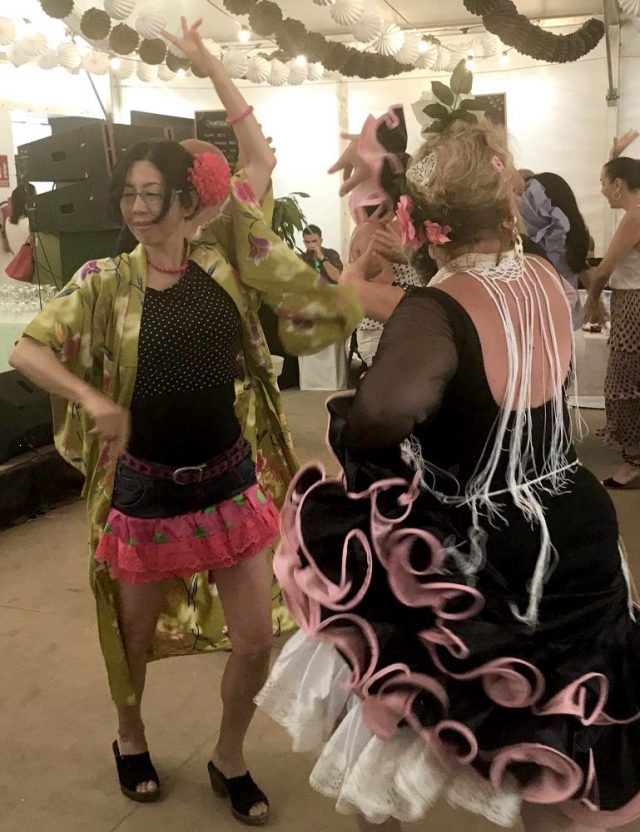 みなさんテーブルから、わらわらと立ち上がる。特設ステージで踊るセビジャーナスは格別。踊れば踊るほど、アドレナリンが大放出。