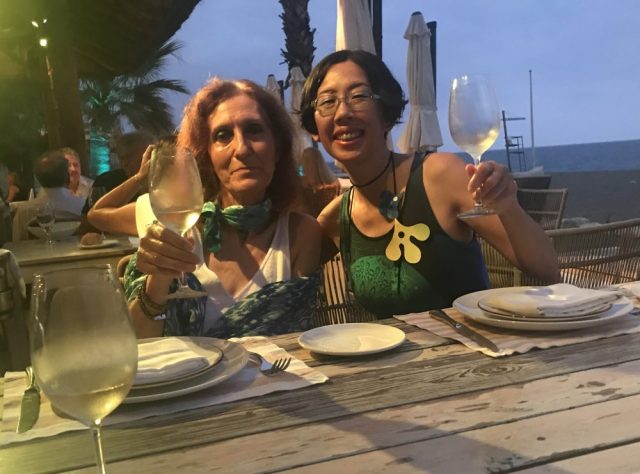 【一日一作プロジェクト】ネックレスアート「地中海を泳ぐ魚鳥」を身につけ、フランスから訪れた友人夫妻&カルメンとビーチレストランへ。