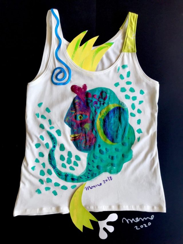 【一日一作プロジェクト】2年前にペイントしたもも衣。肩に青と黄色の飾りをつけ「地中海とルナぴか」を作った。今年こそストリートデビューしたい。