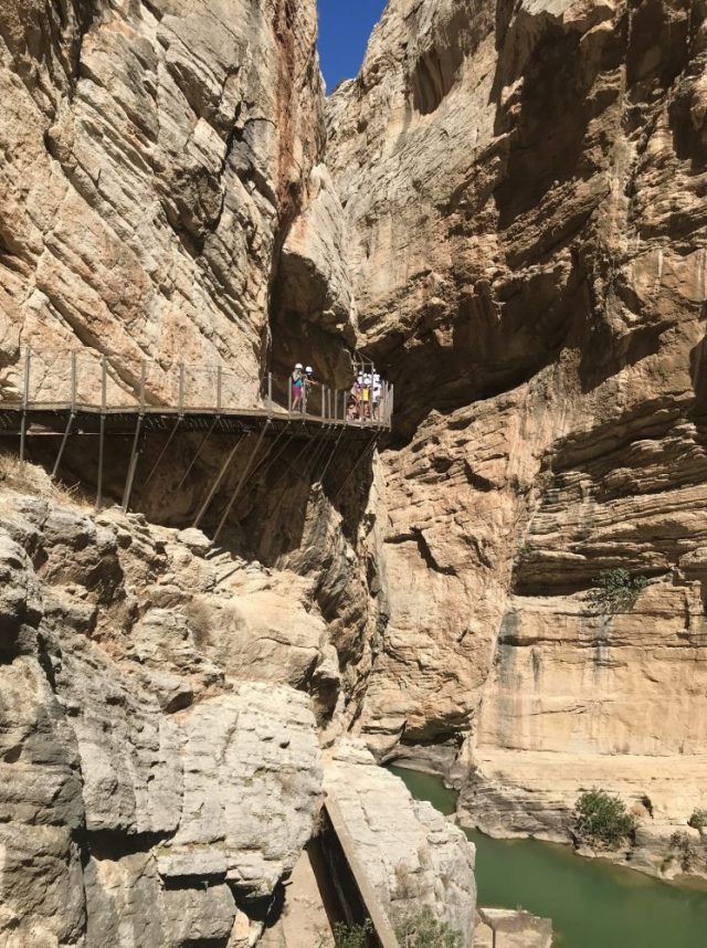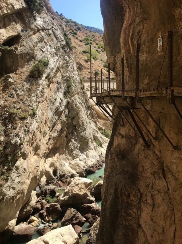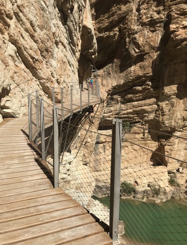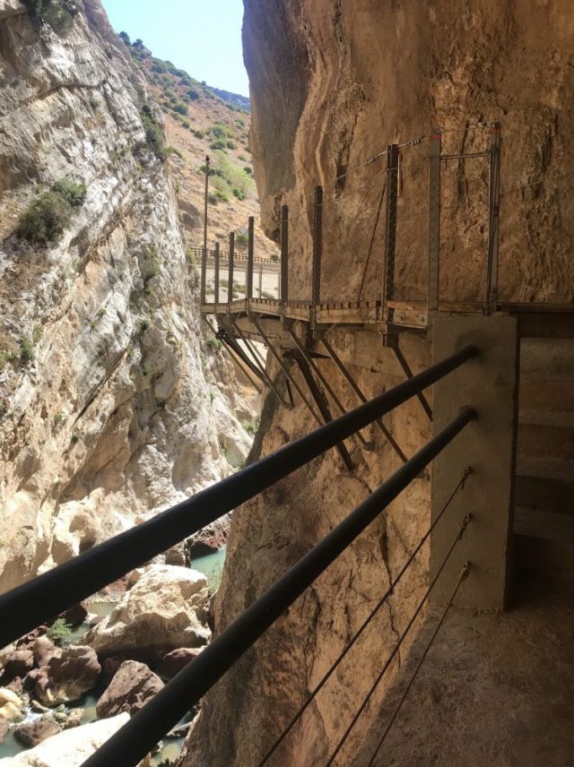 「絶壁に取り付けられた、まつ毛のような通路」と「谷間にかかる吊り橋」