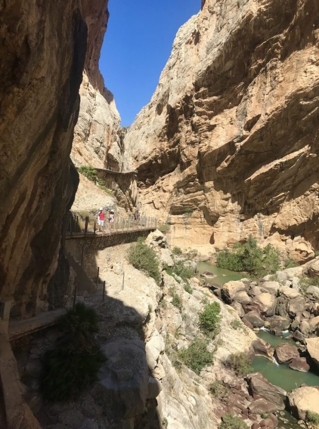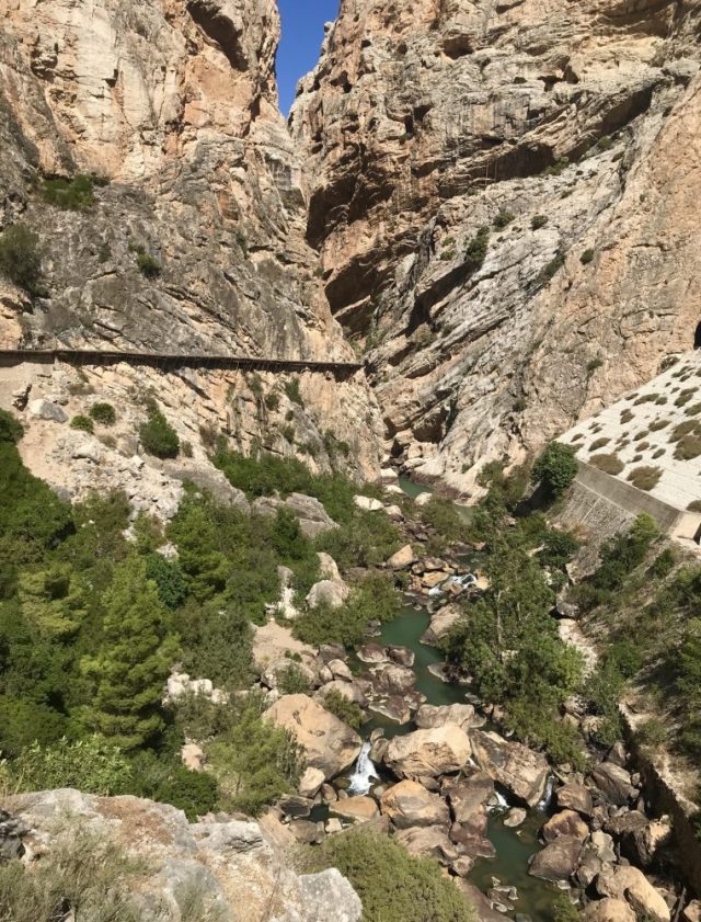 なので、ぞっとする(笑)。角材の隙間から透けて見える谷底。おぉ〜怖っ。うす暗い渓谷を抜けると、開けた岩場に出た。