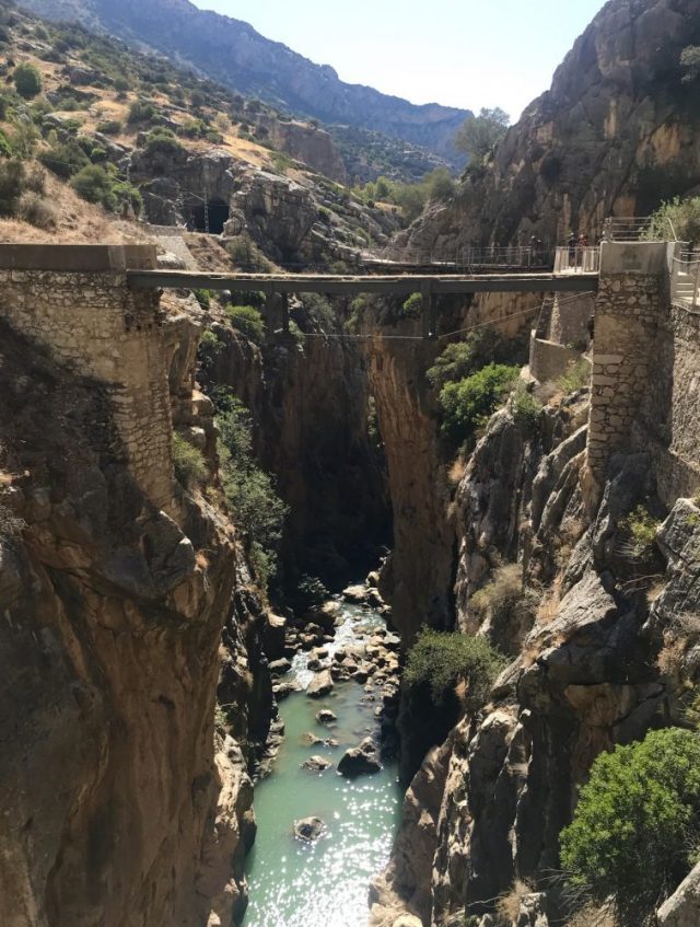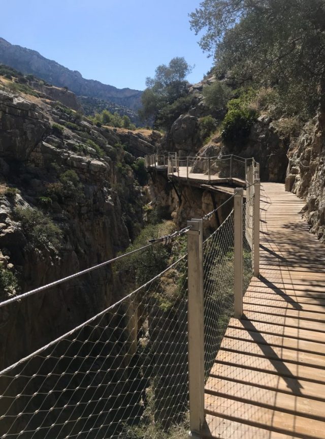 へと差しかかる。ものすごい高さ。谷底と手すりがダブって、遠近感を失う。さらに。ここに来て「突風」。