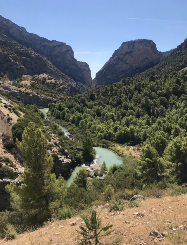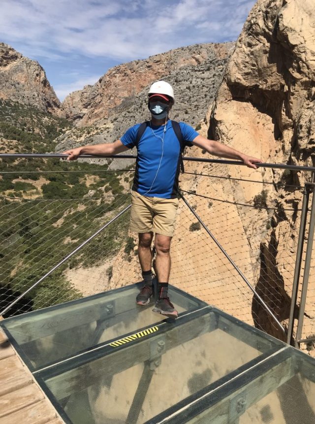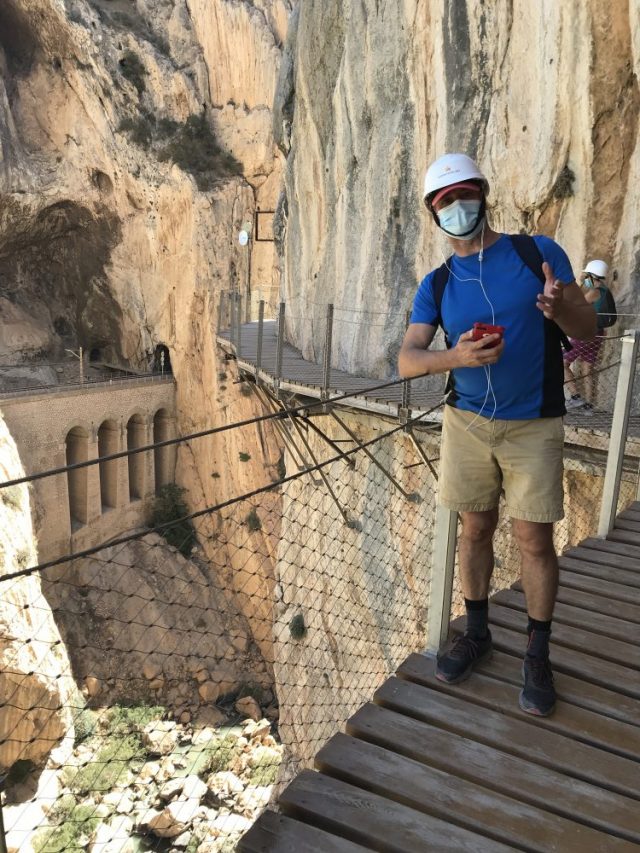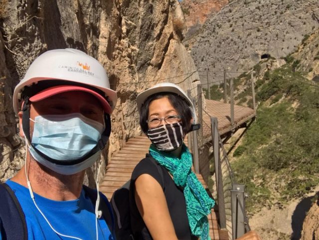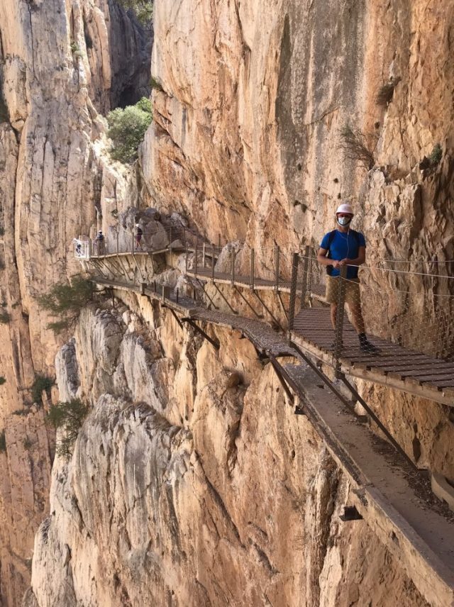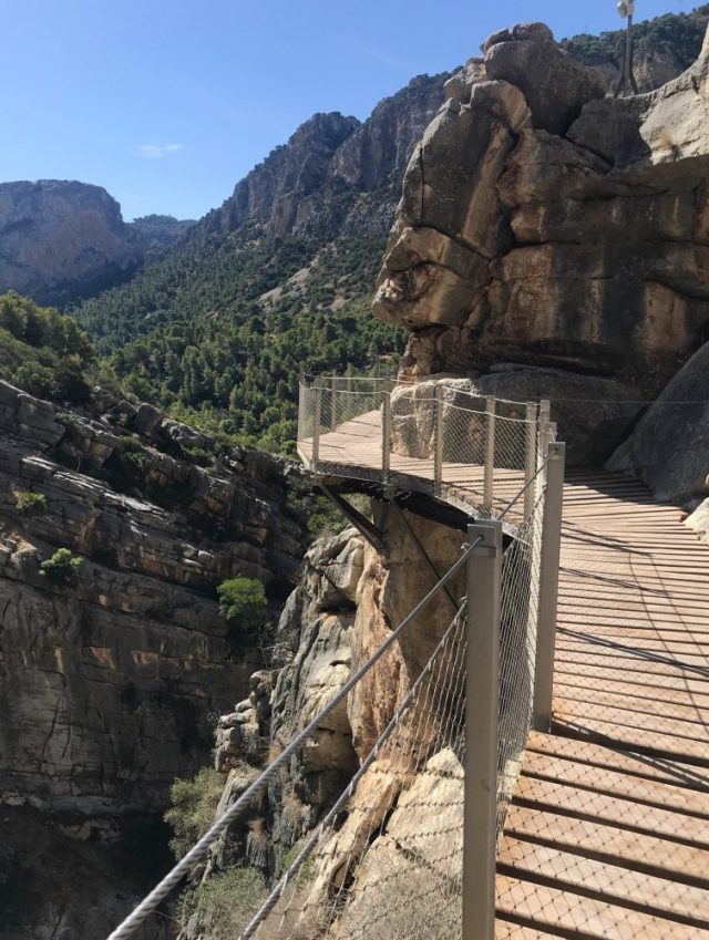 へ(写真)ここだってめちゃ怖い。もう、へっぴり腰。とはいえ、ここまで来ればゴールは近い。後は、この遊歩道のクライマックス