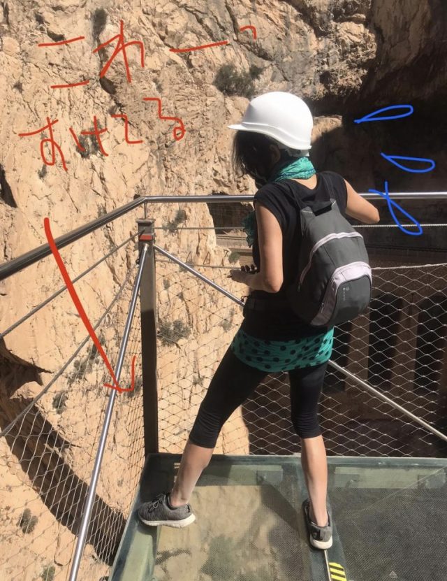 へ挑むのみ。人数制限があるので、2人、3人ずつ渡って行く。さらにみなさん写真を撮るので、ここに来てかなりの行列。その時、ハビ吉が声を上げた。